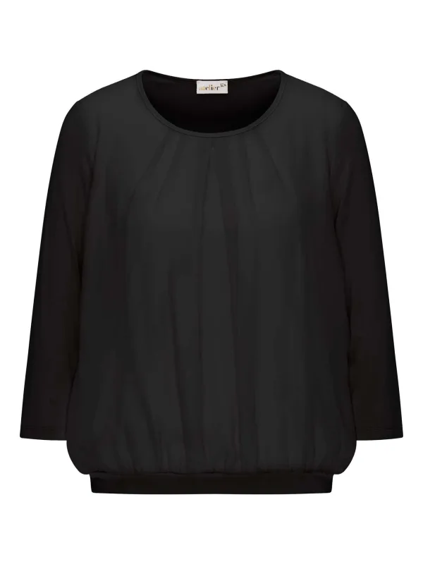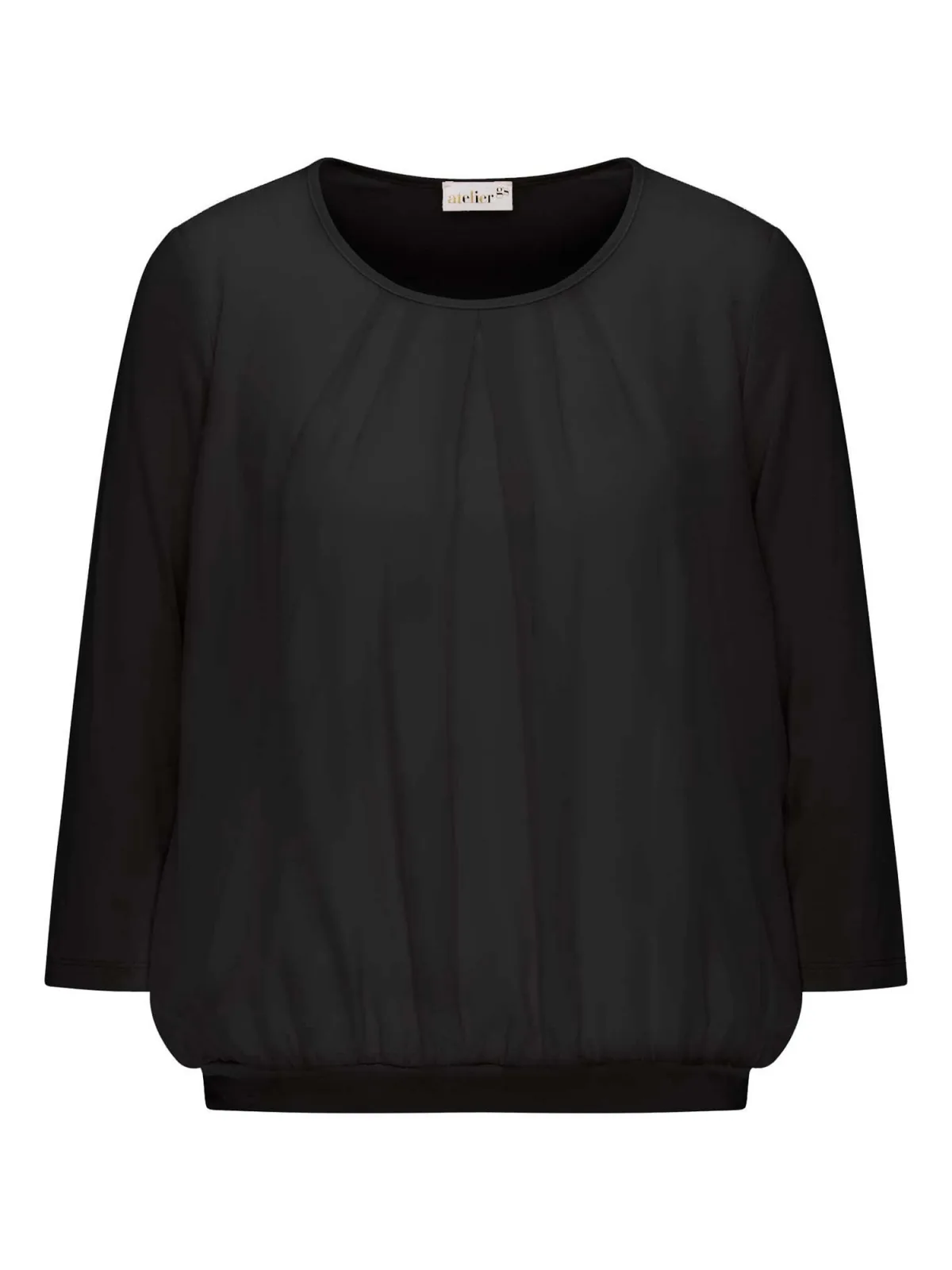 Blouse type: Blouseshirt; Type sluiting: Gesloten; Materiaal: Chiffon; Motief: Effen; Kraag: Zonder kraag; Details: Plooien, Gedrapeerd; Pasvorm: Normale pasvorm; Armlengte: Driekwart mouw; Lengte: Normale lengte