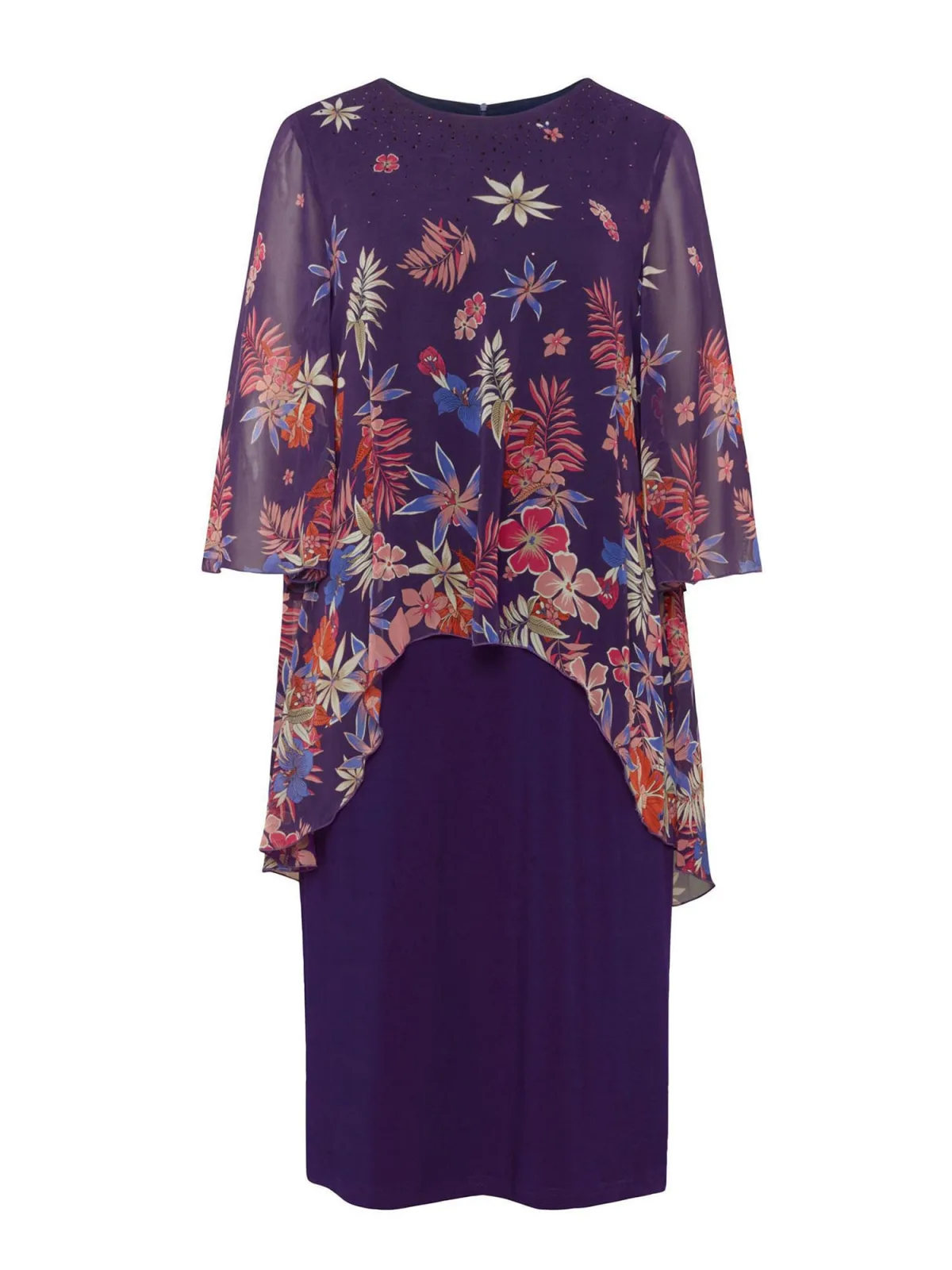 Type sluiting: Ritssluiting; Materiaal: Chiffon; Halstype: Ronde hals; Motief: Bloemenprint; Lengte: Knielengte; Pasvorm: Normale pasvorm; Armlengte: Driekwart mouw