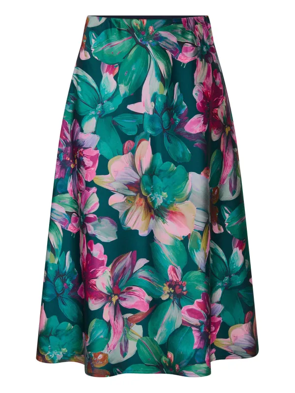 Design: Gevoerde zoom/rand, Tailleband; Type sluiting: Slip; Materiaal: Satijn; Motief: Bloemenprint; Rokvorm: A-lijn rok; Extra's: All-over patroon; Lengte: 3/4 lengte; Pasvorm: Normale pasvorm
