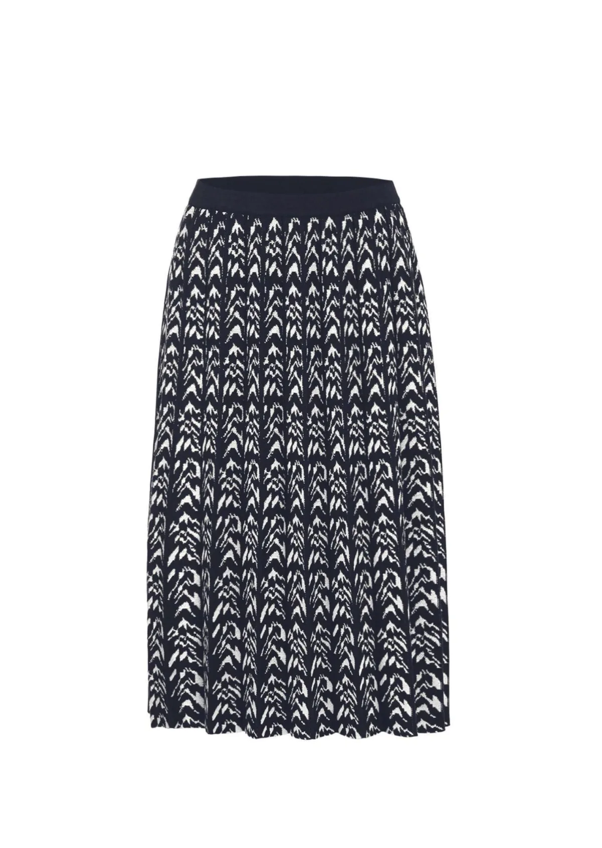 Design: Rechte zoom; Materiaal: Knitwear; Rokvorm: A-lijn rok; Details: Plooien; Extra's: All-over patroon; Lengte: Knielengte; Pasvorm: Normale pasvorm