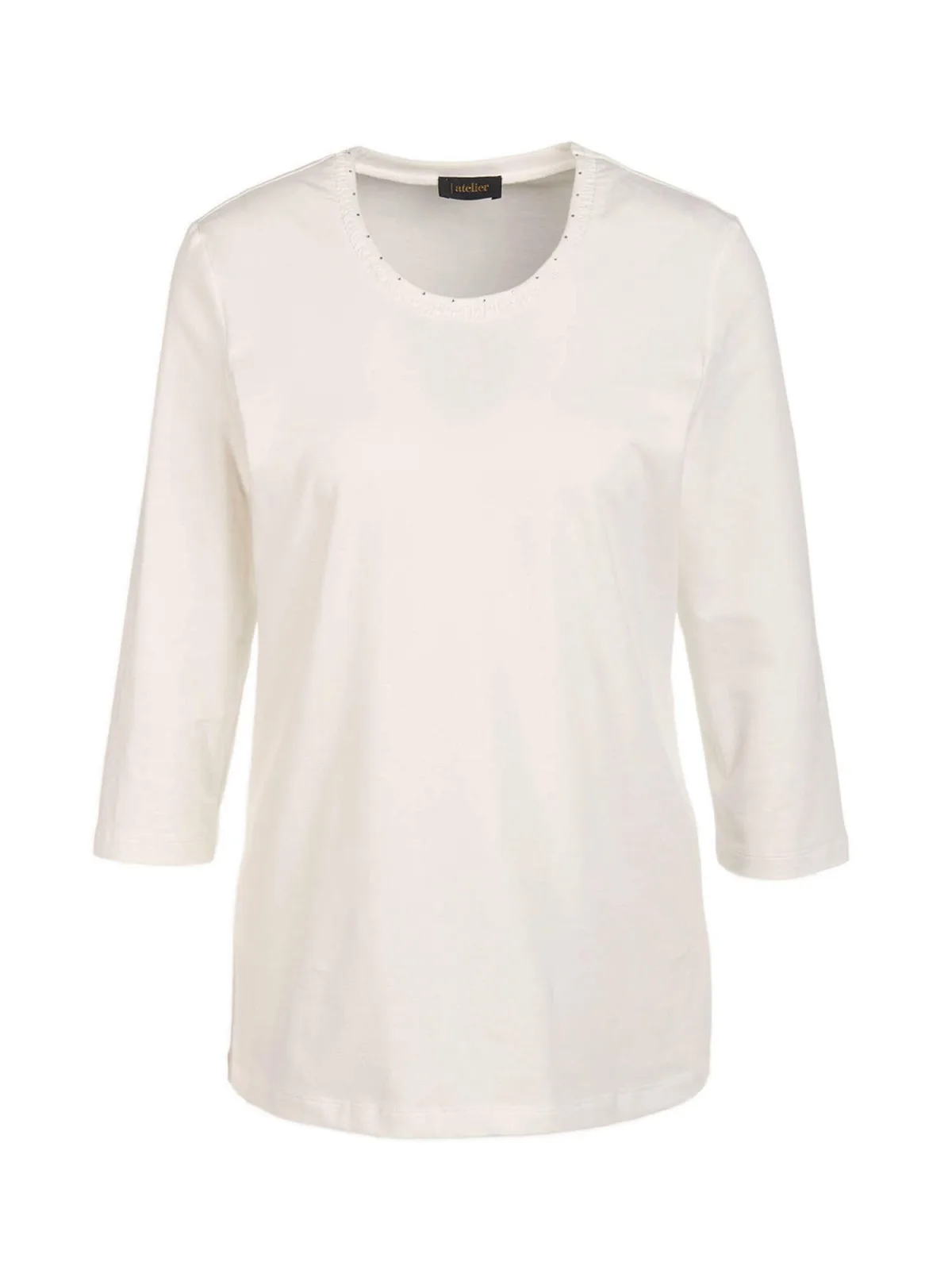 Type sluiting: Open; Materiaal: Katoen; Halstype: Ronde hals; Motief: Effen; Details: Sierstenen; Pasvorm: Normale pasvorm; Armlengte: Driekwart mouw; Lengte: Normale lengte