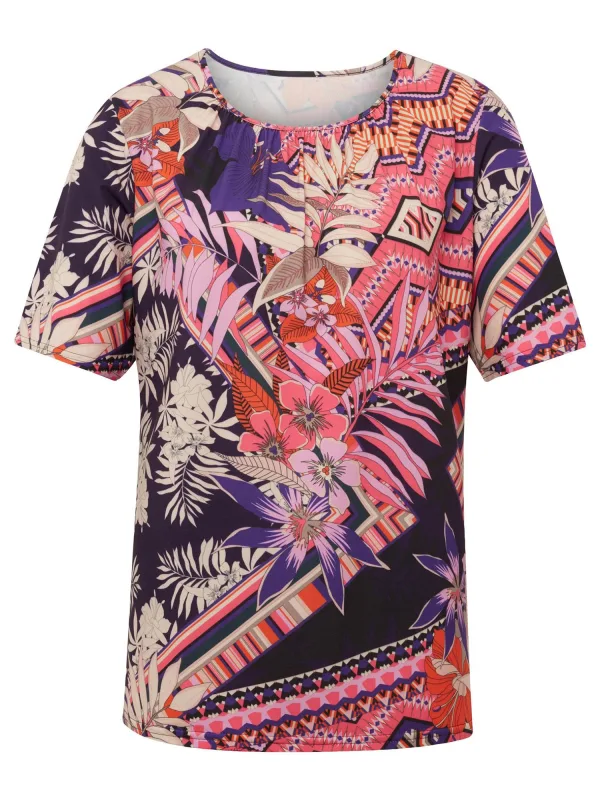 Design: Elastische inserts; Halstype: Ronde hals; Motief: Bloemenprint; Extra's: All-over patroon; Pasvorm: Normale pasvorm; Armlengte: Kwartmouw; Lengte: Normale lengte