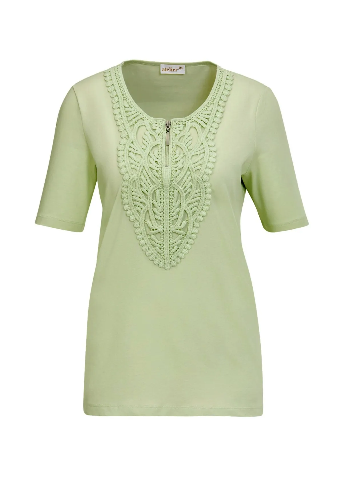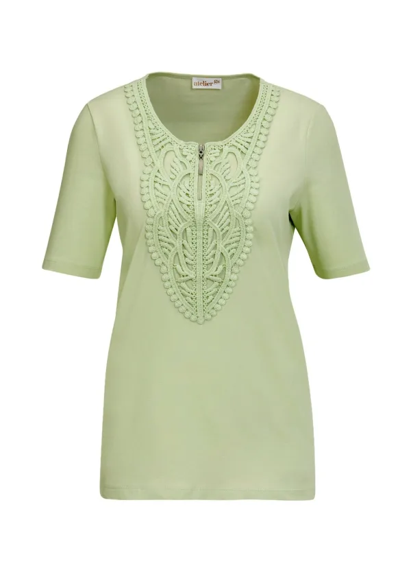 Design: Brede mouwopeningen; Type sluiting: Ritssluiting; Materiaal: Katoen; Halstype: Ronde hals; Motief: Effen; Details: Kant; Pasvorm: Normale pasvorm; Armlengte: Halve mouw; Lengte: Normale lengte
