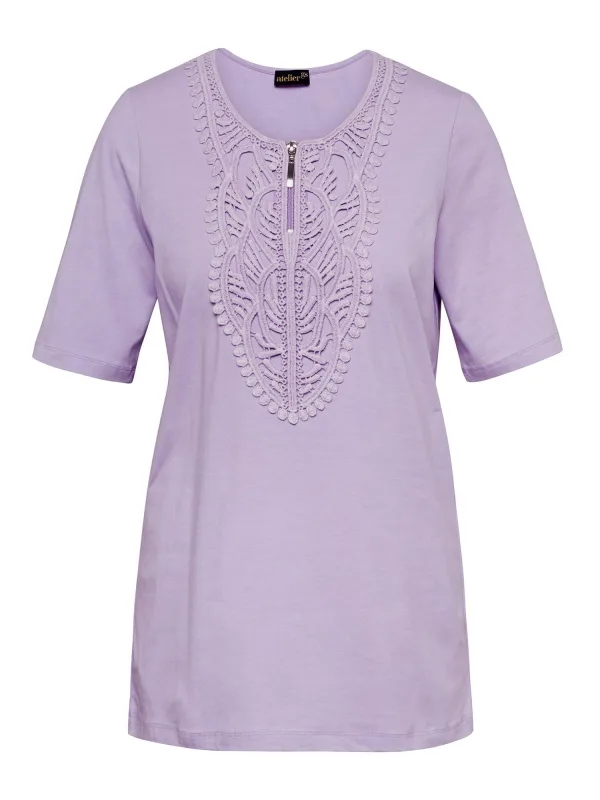 Design: Brede mouwopeningen; Type sluiting: Ritssluiting; Materiaal: Katoen; Halstype: Ronde hals; Motief: Effen; Details: Kant; Pasvorm: Normale pasvorm; Armlengte: Halve mouw; Lengte: Normale lengte