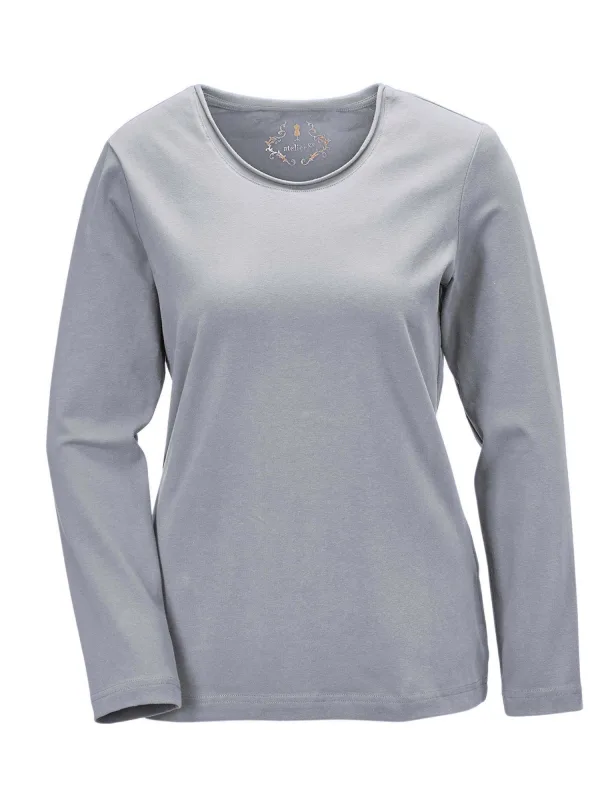 Materiaal: Jersey; Halstype: Ronde hals; Motief: Effen; Pasvorm: Normale pasvorm; Armlengte: Lange mouw; Lengte: Normale lengte