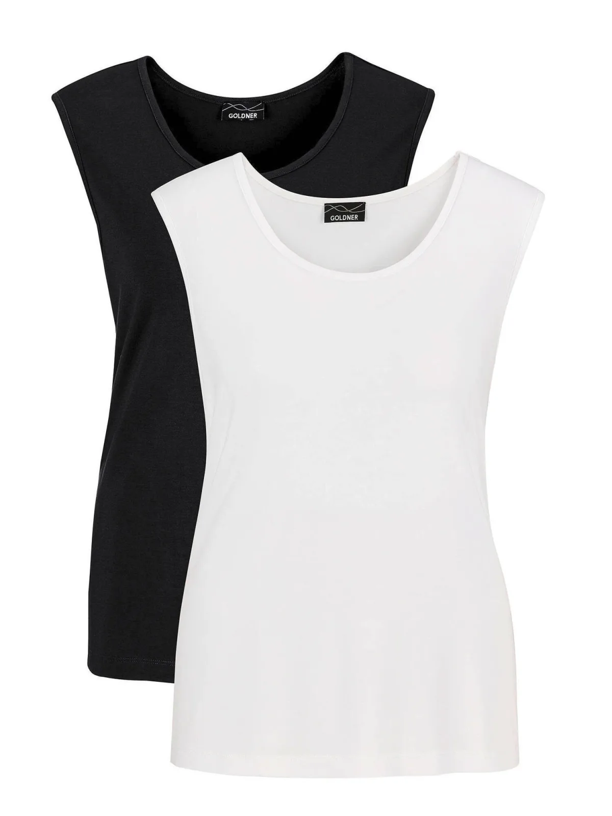 Design: Ingelegde zoom/rand; Materiaal: Jersey; Halstype: Ronde hals; Motief: Effen; Soort bandjes: Brede bandjes; Extra's: Voelt zacht aan; Pasvorm: Normale pasvorm; Aantal: 2 Pack; Armlengte: Mouwloos; Lengte: Normale lengte