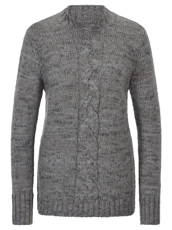 Design: Rechte zoom, Geribd ceintuurtje, Vlecht brei; Materiaal: Knitwear; Halstype: Opstaande kraag; Motief: Mélange; Extra's: Op staal naden; Pasvorm: Normale pasvorm; Armlengte: Lange mouw; Lengte: Normale lengte