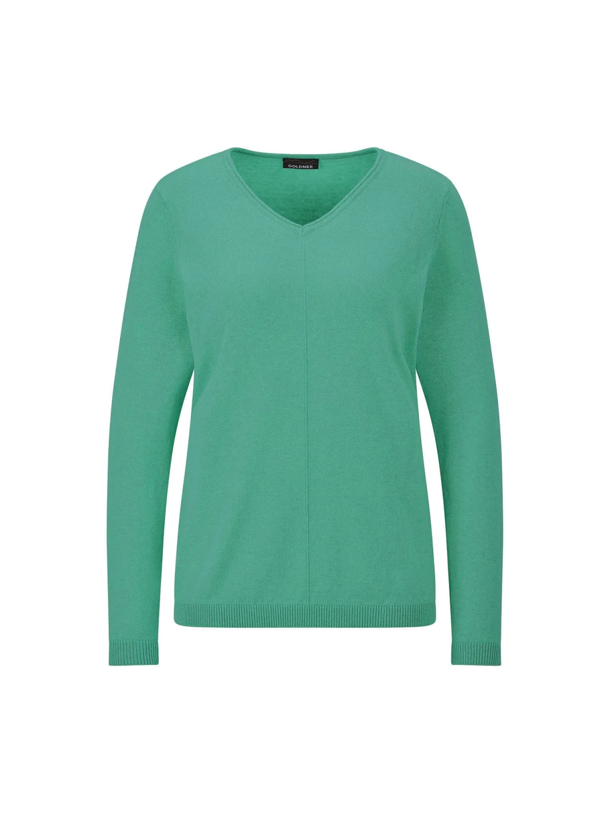 Design: Geribd ceintuurtje; Materiaal: Knitwear; Halstype: V-hals; Motief: Effen; Extra's: Op staal naden; Pasvorm: Normale pasvorm; Armlengte: Lange mouw; Lengte: Normale lengte