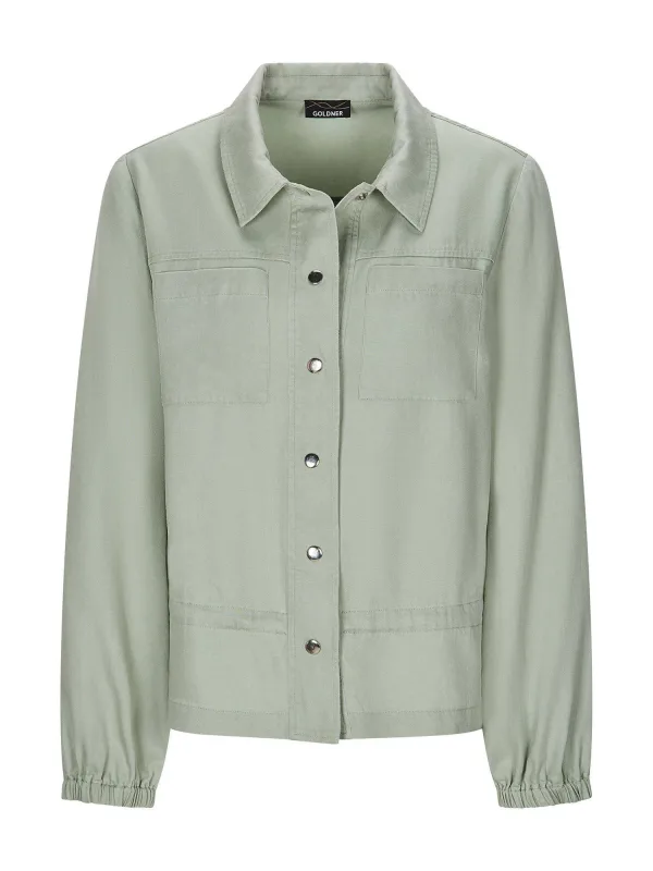 Design: Gevoerde zoom/rand, Met band/snoer, Borstzak; Type sluiting: Drukknoop; Type jas: Blouson; Voering: Niet gevoerd; Materiaal: Lyocell; Motief: Effen; Extra's: Op staal naden; Pasvorm: Normale pasvorm