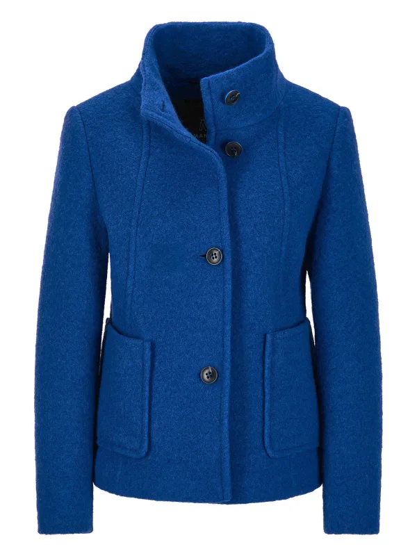 Type mantel: Klassieke mantel; Design: A-lijn, Knop placket, Staande kraag, Zakken aan de zijkant; Type sluiting: Knoopsluiting; Voering: Niet gevoerd; Materiaal: Wol; Motief: Effen; Extra's: Op staal naden; Pasvorm: Normale pasvorm; Lengte: Korte pasvorm