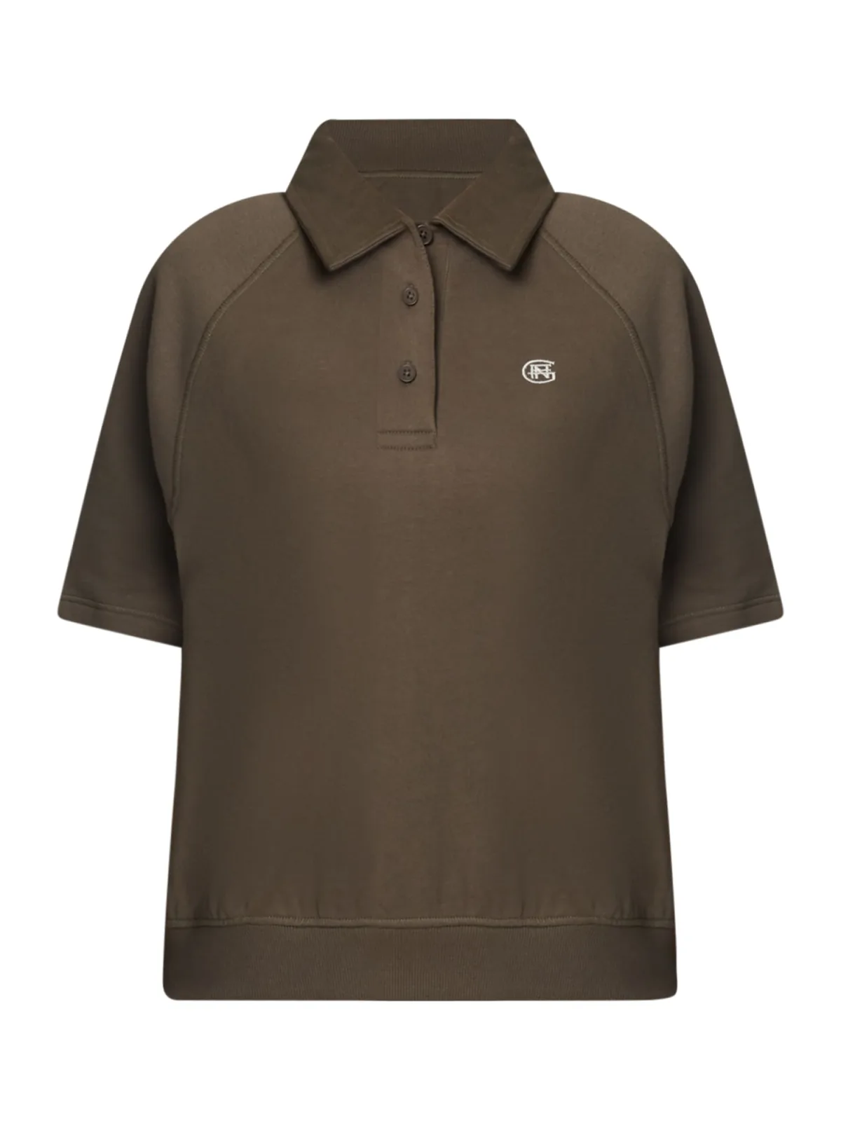 Design: Raglanmouwen; Type sluiting: Knoopsluiting; Materiaal: Sweatstof; Halstype: Polokraag; Motief: Effen; Details: Borduursels; Extra's: Label borduurwerk; Pasvorm: Losse pasvorm; Armlengte: Halve mouw; Lengte: Normale lengte
