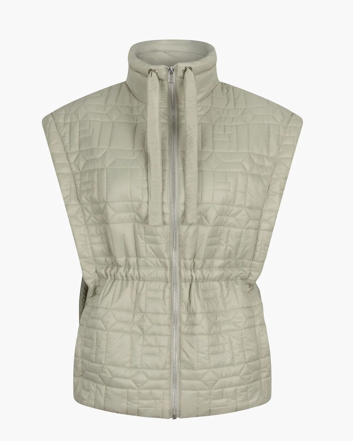 Bodywarmer voor dames Gina Vest 1-B van Goosecraft. Dit lichtgewicht mouwloze vest is gemaakt van doorgestikt nylon, waardoor hij stijlvol en comfortabel is. Met het handige trekkoord kun je de kraag aanpassen. Het vest sluit met een rits, en heeft een elastische bewerking in de taille. Kleur: lichtgroen. (Sage