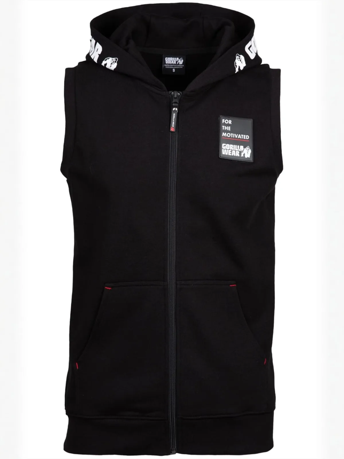 Design: Ritssluiting, Kangaroo zak; Materiaal: Sweatstof; Halstype: Capuchon; Motief: Logoprint; Extra's: Label patch/label flag; Pasvorm: Aansluitende pasvorm; Armlengte: Mouwloos