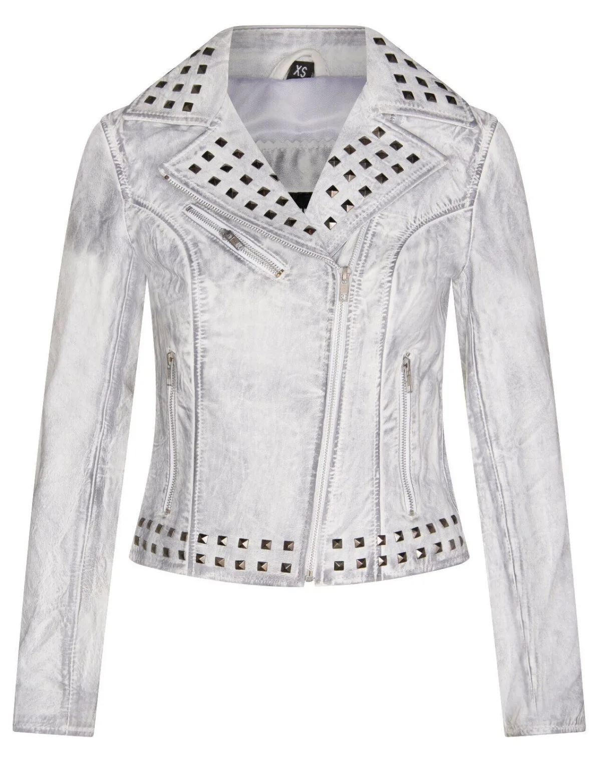 Gothic leren bikerjack voor dames met studs-Bilbao Prijzen
