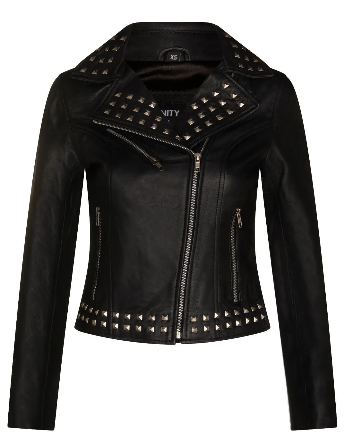 Gothic leren bikerjack voor dames met studs-Bilbao