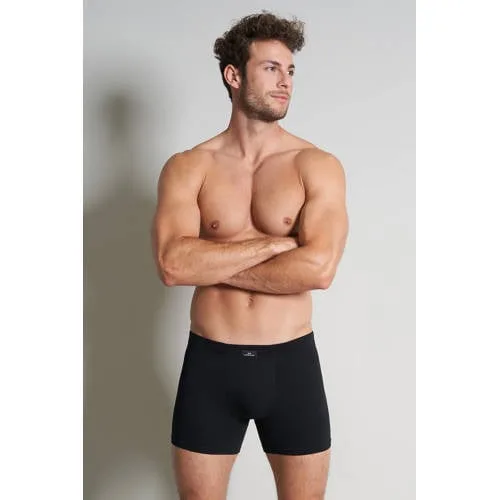 Deze set van 2 heren boxershorts van Götzburg in zwart katoen is een praktische basis voor elke dag. De effen zwarte kleur is gemakkelijk te combineren met al je outfits en valt rustig onder je kleding. Dankzij de combinatie van 95% katoen en elastaan voelt de stof zacht aan op de huid en sluit de boxershort prettig aan zonder te knellen.Comfortabel in het dagelijks dragen Set van 2: altijd een extra boxershort bij de hand Zachte stof met katoen voor een prettig gevoel op de huid Elastaan in het materiaal voor een flexibele, aansluitende pasvorm Effen zwarte kleur die niet doorschijnt onder je kleding Geschikt als dagelijkse basic in je ondergoedlade Machinewas, dus eenvoudig te onderhouden Niet drogen in de droogtrommel om de kwaliteit van de stof langer mooi te houden Hygiënisch voorschrift: passen over je eigen ondergoedPraktisch ondergoed voor elke dagDeze boxershorts zijn geschikt voor alledaags gebruik, van werkdag tot weekend. De soepele stof volgt je bewegingen en blijft de hele dag prettig zitten onder een jeans, chino of korte broek.Götzburg: betrouwbare basicsGötzburg staat bekend om ondergoed met aandacht voor draagcomfort en pasvorm. De ontwerpen zijn tijdloos en praktisch, zodat je kunt rekenen op basics die lang onderdeel blijven van je dagelijkse garderobe.Een rustige, comfortabele basis waar je elke dag op terug kunt vallen.
