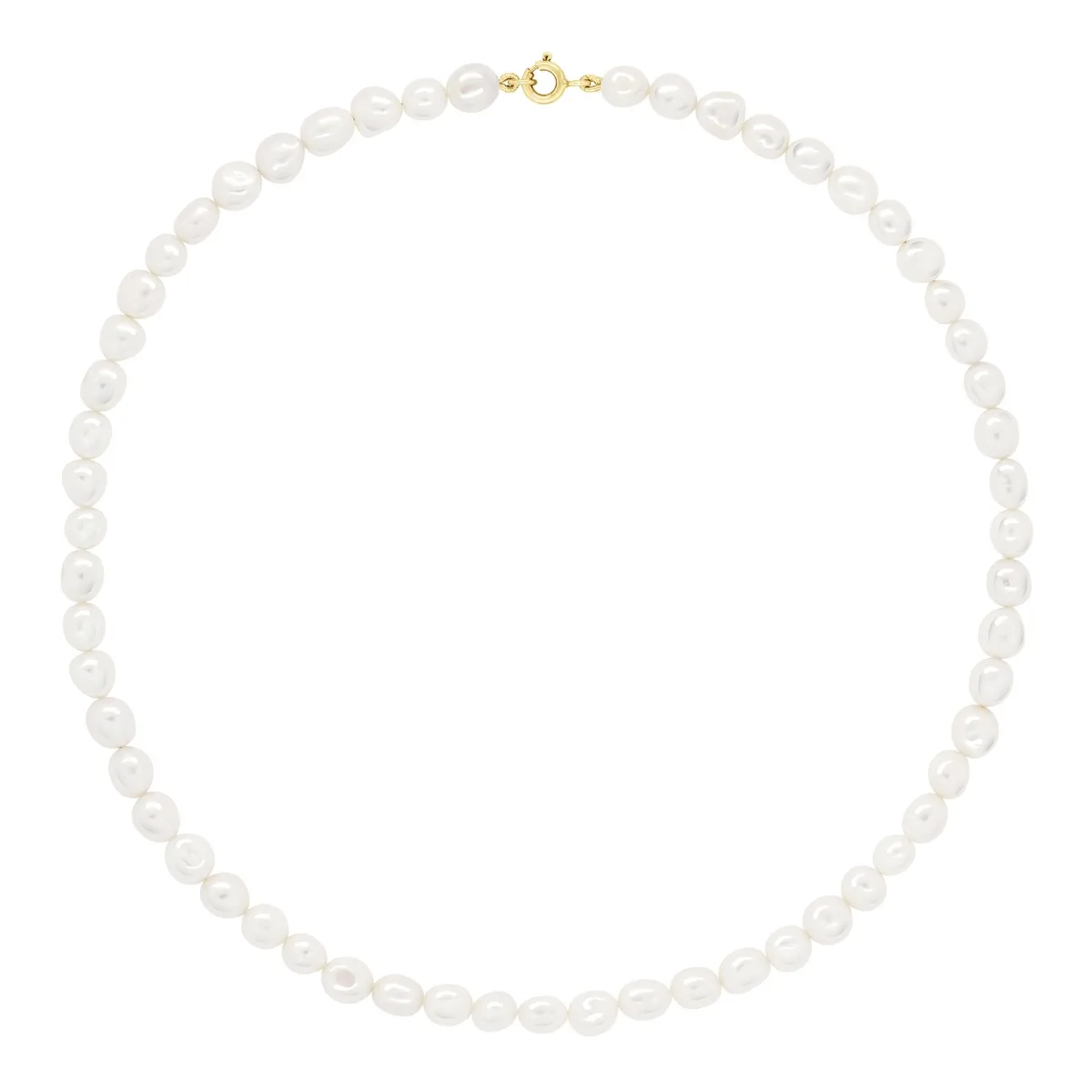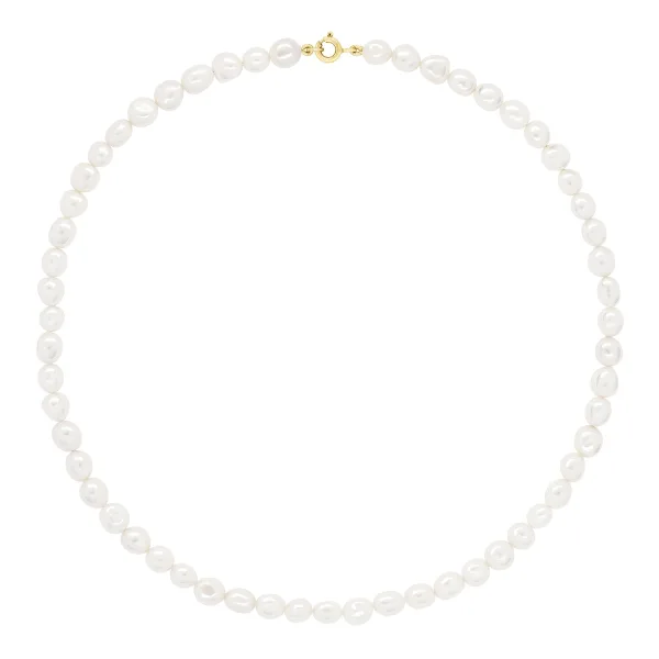 Ketting Goud - Rij van Echte Zoetwaterparels Baroque 6-7 mm - KLEUR NATUURLIJK WIT - Lengte 45 cm - Veerring Sluiting Comfort Geel Goud - Geleverd met Certificaat van Authenticiteit en Internationale Garantie - GEDECONDITIONEERD IN ONZE FRANSE WORKSHOPS