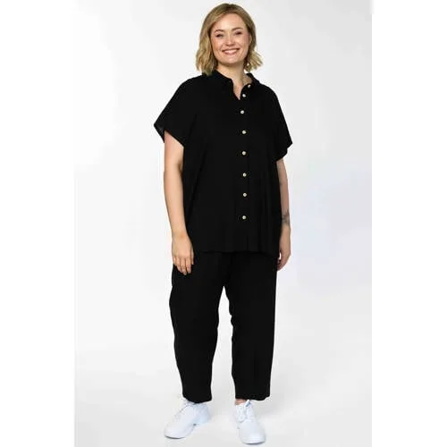 Deze zwarte Gozzip blouse voor dames is een luchtige basic die je het hele seizoen door erbij pakt. De combinatie van 70 procent viscose en 30 procent linnen zorgt voor een soepele stof met een natuurlijke look. De blouse heeft een klassieke kraag en kortere mouwen, ideaal voor mildere dagen of om onder een vest te dragen.Details die je elke dag kunt dragen Gemaakt van 70% viscose en 30% linnen voor een zachte, ademende stof Effen zwarte kleur die makkelijk combineert met je favoriete broeken en rokken Klassieke kraag en doorknoopsluiting voor een nette, tijdloze uitstraling Korte, rechte mouwen voor extra bewegingsvrijheid Zonder borstzakken of sierzakken voor een rustige, strakke voorkant Geschikt voor de lente en frisse zomerdagenStyling voor elke dagDeze blouse past goed bij een rechte broek voor een verzorgde look naar kantoor, maar combineert ook eenvoudig met een jeans voor een ontspannen vrije dag. Draag de blouse netjes ingestopt voor een wat gekledere stijl of los over een smalle broek voor een meer casual gevoel.Gozzip als vertrouwde keuzeGozzip staat bekend om kleding met aandacht voor draagcomfort en pasvorm. Door het gebruik van fijne materialen en doordachte modellen biedt het merk makkelijke items voor elke dag, die je garderobe rustig en overzichtelijk houden.Een veelzijdige zwarte blouse waar je het hele seizoen plezier van hebt.