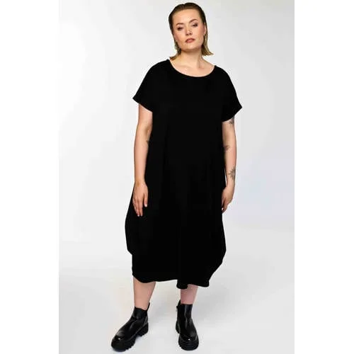 Deze zwarte Gozzip jurk is een praktische basic voor dagen waarop je iets luchtigs en toch gekleds wilt dragen. De T-shirtjurk heeft een middellange lengte, korte rechte mouwen en een ronde hals. De soepel vallende stof volgt je bewegingen op een ontspannen manier, waardoor de jurk prettig aanvoelt in het dagelijks leven.Details die het verschil maken Effen zwarte kleur, makkelijk te combineren met sneakers, sandalen of laarsjes Middellange T-shirtjurk, ideaal voor verschillende gelegenheden Korte rechte mouwen voor een rustige, tijdloze uitstraling Ronde hals die mooi aansluit zonder te strak te zitten Zonder sluiting, je trekt de jurk eenvoudig over je hoofd aan Gemaakt van een zachte stof met viscose en elastaan voor een soepele fit Geen zakken voor een clean silhouetComfortabel in het dagelijks levenDeze jurk past goed bij een drukke dag waarin je veel beweegt, maar er toch verzorgd uit wilt zien. Combineer met witte sneakers voor een casual look of met een ketting en sandaaltjes voor een meer vrouwelijke uitstraling.Gozzip: mode met aandacht voor pasvormGozzip staat bekend om kleding waarin comfort en pasvorm duidelijk terugkomen. De ontwerpen zijn doordacht en gericht op vrouwen die zich graag vrij willen bewegen zonder concessies te doen aan uitstraling. Met deze jurk kies je voor een praktische én stijlvolle aanvulling op je garderobe.Een veelzijdige jurk die je het hele seizoen graag uit de kast pakt.