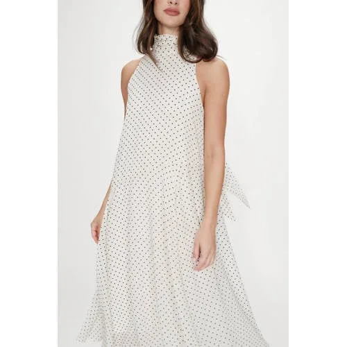 De Grace & Mila VALORIA jurk is een luchtige zomerjurk met een speelse maar rustige uitstraling. De wit/zwarte stippenprint geeft direct karakter, terwijl het mouwloze model en de midi lengte zorgen voor een lichte en comfortabele feel op warme dagen. De soepel vallende stof beweegt makkelijk met je mee, ideaal voor een dag in de stad of een zomerse lunch.Verfijnde details voor elke dag Wit/zwart design met stippenprint voor een grafische look A-lijn pasvorm die losjes om het lichaam valt Halterjurk met strikkraag voor een rustige halslijn Midi lengte, passend bij lente en zomer Mouwloos model dat luchtig draagt op warme dagen Knoopsluiting aan de voorkant voor makkelijk aan- en uittrekken Gemaakt van een soepele stof die mooi valt rond het lichaam Onderdeel van de Boutique collectie van Grace & Mila Onderhoudsvriendelijk: handwas, niet strijken en niet in de droogtrommelVan zomerse dag tot avond uitDeze jurk is geschikt voor de warmere seizoenen. Combineer met sandalen en een lichte tas voor overdag of draag er hakken en subtiele sieraden bij voor een avondje uit. De strikkraag en midi lengte vormen samen een verzorgde uitstraling.Parijse charme van Grace & MilaGrace & Mila ontwerpt vrouwelijke kleding met een zachte, moderne uitstraling. Het merk laat zich inspireren door invloeden uit de Franse mode, met aandacht voor draagbaarheid en silhouet. Met VALORIA kies je voor een goed uitgewerkte jurk die je op verschillende momenten kunt dragen.Een luchtige, stijlvolle jurk voor de zonnige seizoenen.