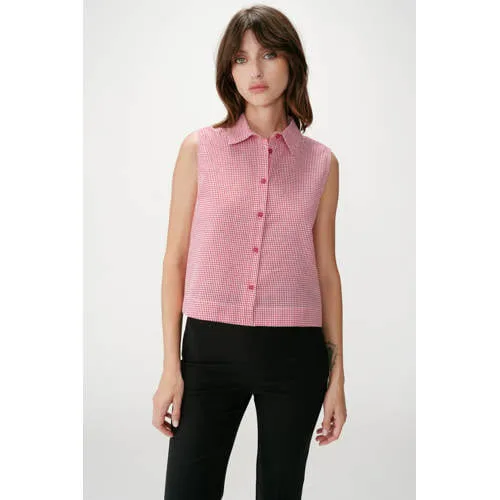 Deze katoenen dames top met ruitprint van Grace & Mila geeft je outfit direct een frisse, lichte uitstraling. De rood / ecru ruit oogt speels en toch rustig, waardoor de top zowel casual als wat gekleder te dragen is. Het mouwloze model laat je schouders vrij en is ideaal voor de lente en warme dagen. Gemaakt van 100% katoen voelt de stof luchtig en zacht aan op de huid.Details die het verschil maken Mouwloze top, prettig op warmere dagen of onder een vest of blazer Klassieke kraag voor een nette, verzorgde look Rood / ecru ruitdessin dat voor een levendig maar rustig beeld zorgt Gemaakt van 100% katoen, een ademende stof die soepel draagt Geen zakken voor een slank en opgeruimd silhouet Onderdeel van de Boutique collectie, met oog voor verfijnde detailsStylen van de geruite topDeze top combineer je makkelijk met een lichte jeans of een ecru pantalon voor een frisse lente-look. Ook onder een opengeknoopt vest of een blazer blijft de klassieke kraag mooi in beeld. Sneakers geven een ontspannen uitstraling, terwijl sandaaltjes of loafers het geheel net iets gekleder maken.Grace & Mila: vrouwelijke details met een frisse kijkGrace & Mila staat bekend om eigentijdse, vrouwelijke collecties met een Franse knipoog. De ontwerpen worden gemaakt met aandacht voor pasvorm en verfijnde details, zodat je elke dag iets draagt dat comfortabel voelt en er verzorgd uitziet. Met deze top haal je een stijlvol item in huis dat makkelijk meebeweegt met jouw dagelijkse leven.Een luchtige, geruite basic waar je het hele seizoen plezier van hebt.