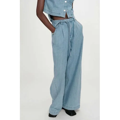 Grace & Mila high waist gestreepte wide leg jeans medium blue denim