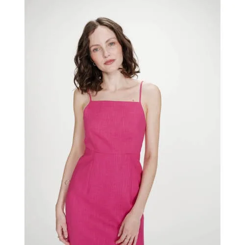 Deze roze linnen midi jurk van Grace & Mila is een luchtige keuze voor zonnige dagen. De effen roze kleur geeft een rustige, vrouwelijke uitstraling en de middel-lange lengte valt mooi langs het lichaam. Dankzij de combinatie van 80% LINNEN, 20% COTTON voelt de stof soepel en koel aan, ideaal voor het voorjaar en de zomer.Verfijnde details voor elke dag Gemaakt van 80% LINNEN, 20% COTTON voor een ademende en zachte stof Middel-lange midi lengte, comfortabel en geschikt voor veel gelegenheden Spaghettibandjes en rechte mouwinzet zorgen voor een elegante, open schouderpartij Vierkante halslijn voor een moderne, vrouwelijke look Ritssluiting maakt aan- en uittrekken eenvoudig Effen roze kleur, makkelijk te combineren met sandalen of sneakers Zonder zakken voor een gladde, rustige belijningFris en licht voor het warmere seizoenDeze midi jurk komt goed tot zijn recht op warme lentedagen en zomerse momenten. Draag de jurk met platte sandalen voor een ontspannen uitstraling of met een fijn vest als het wat frisser is. De open hals en de dunne bandjes laten ruimte voor sieraden, zoals een subtiele ketting of armband.Grace & Mila: aandacht voor vrouwelijke stijlGrace & Mila staat bekend om collecties met een zachte, vrouwelijke uitstraling en comfortabele pasvormen. Bij dit merk komen modieuze details samen met materialen die prettig aanvoelen, zodat je de kleding graag zowel overdag als in je vrije tijd draagt.Een luchtige keuze die je garderobe klaar maakt voor zonnige dagen.