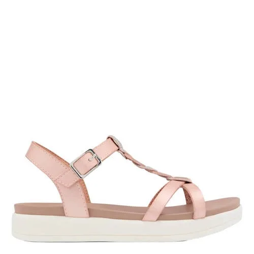 Deze lichtroze sandaal van Graceland is een praktische optie voor zonnige dagen. De glanzende zilverkleurige details en de fonkelende strass steentjes geven de meisjes sandalen een speelse uitstraling, geschikt voor naar school, een feestje of een dagje weg. De platte zool en lage hakhoogte zorgen ervoor dat je kind comfortabel kan lopen, rennen en spelen.Lichte sandaal met glansdetails Lichtroze/zilveren kleur met meerkleurige strass steentjes voor een opvallend effect Gemaakt van imitatieleer, met een gladde binnenzool en voering van imitatieleer/PU Rubberen buitenzool voor goede grip op verschillende ondergronden Platte zool en lage hakhoogte (0 - 2,5 cm) voor stabiel en comfortabel lopen Gesp als sluiting, zodat de sandaal goed om de voet blijft zitten Normale leest, passend voor de meeste voeten van schoolgaande meisjesGeschikt voor elke zonnige dagDeze sandaal combineert goed met luchtige jurken, rokjes of een korte broek. Door de verstelbare gesp kan de pasvorm eenvoudig worden aangepast, wat praktisch is tijdens lange dagen buiten spelen of wandelen.Over GracelandGraceland biedt modieuze schoenen die aansluiten bij de dagelijkse routines van kinderen. De ontwerpen combineren een vrolijke stijl met praktische details, zodat jouw kind schoenen draagt die goed zijn afgestemd op alledaagse activiteiten.Een speelse sandaal met glans en comfort voor lente en zomer.