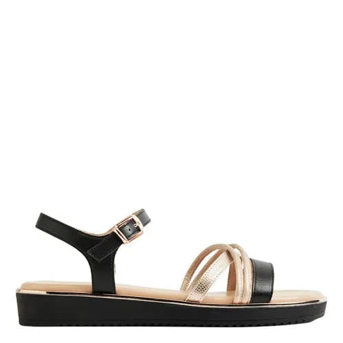 Graceland leren sandalen zwart/goud