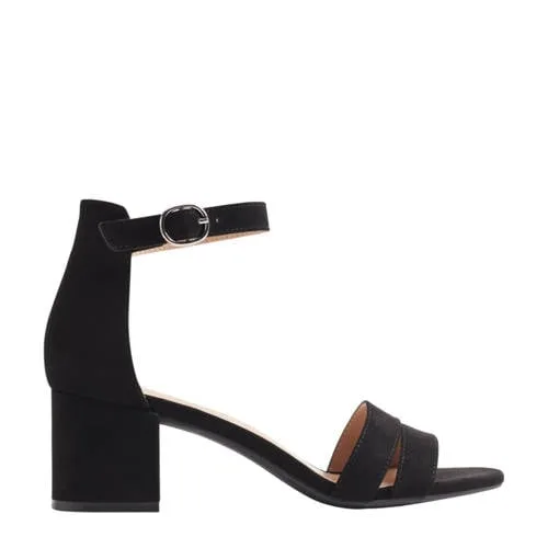 Deze sandalette voor dames van Graceland uit de vanHaren-collectie heeft een bovenwerk van imitatiesuède. Het model is voorzien van een gespsluiting en een blokhak met een hoogte van 6 cm. De sandalette heeft een voering van imitatieleer en een vast voetbed.