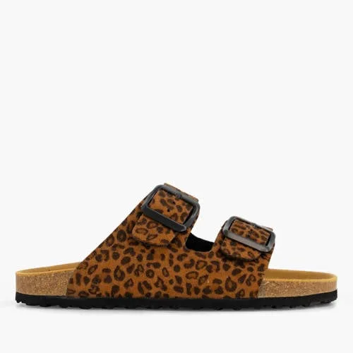 Graceland suède slippers met panterprint cognac/zwart Prijzen