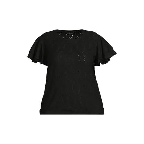 GREAT LOOKS broderie top met ruches zwart