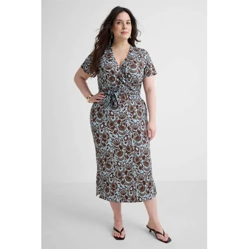 Specificaties: GREAT LOOKS crinkle overslagjurk met bloemenprint blauw/bruin