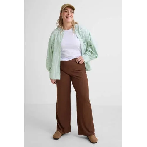 GREAT LOOKS crinkle wide leg broek bruin Prijzen