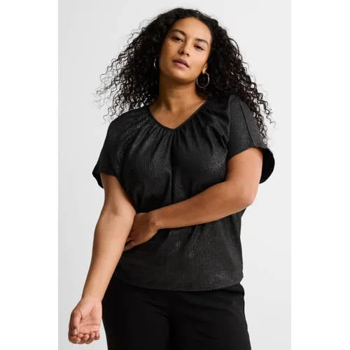 Deze top voor dames van GREAT LOOKS is gemaakt van een comfortabele crinkle stof. Het model heeft een V-hals en kapmouwen. In de stof zijn glitters verwerkt, wat de top een speelse en feestelijke touch met subtiele sparkle geeft. Door de elastische stof, is het gemakkelijk te dragen. Perfect voor een feestelijke gelegenheid of avoindje uit.Details van deze top:• V-hals• glitters• feestelijk• kapmouwen• elastische inzet• elastische crinkle stof