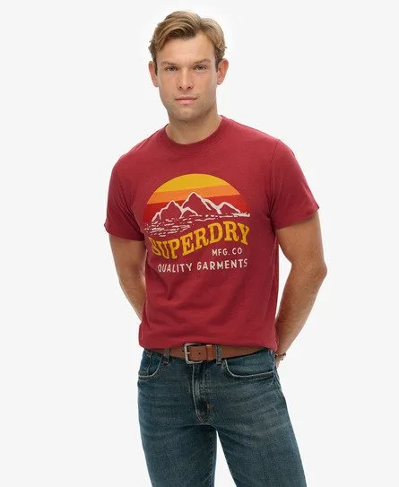 Relaxte pasvorm - de klassieke Superdry-pasvorm. Niet te nauwsluitend, niet te ruim, precies goed. Kies je gebruikelijke maat Geribde, ronde halslijn en korte mouwen Een gebarsten afbeelding op de borst en een kenmerkend label op de mouw Laat je avontuurlijke kant zien met ons Great Outdoors Relaxed T-shirt. Gemaakt met de beste kwaliteit en oog voor detail. Dit is een blijvertje. Met een gebarsten afbeelding op de borst en felle kleuren verandert dit item na verloop van tijd in een prachtig vin
