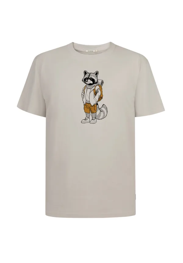 Specificaties: GREENBOMB Shirt ‘Animal Raccoon Hike’ geel / grijs gemêleerd