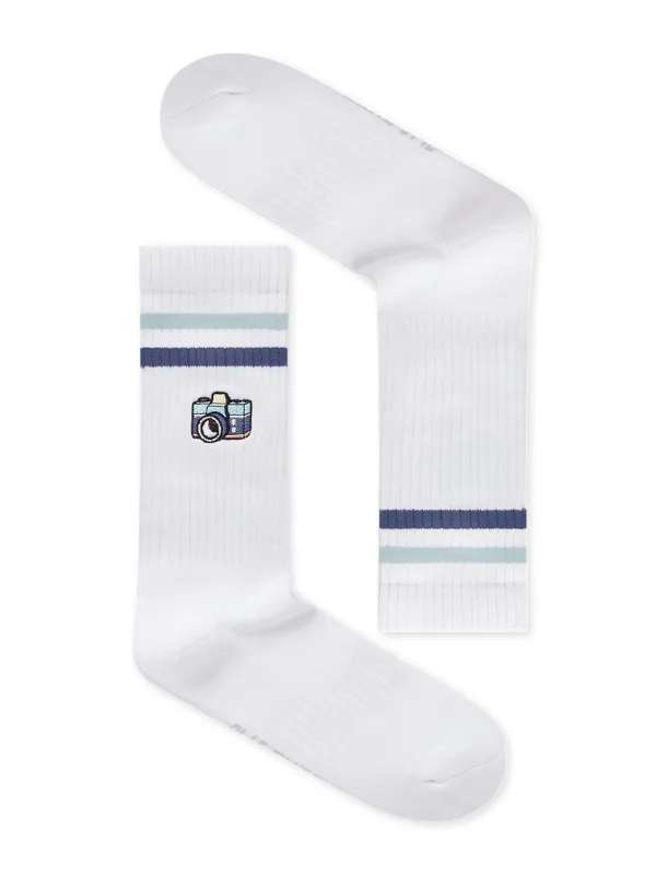 GREENBOMB Sokken ‘Camera’ indigo / mintgroen / wit