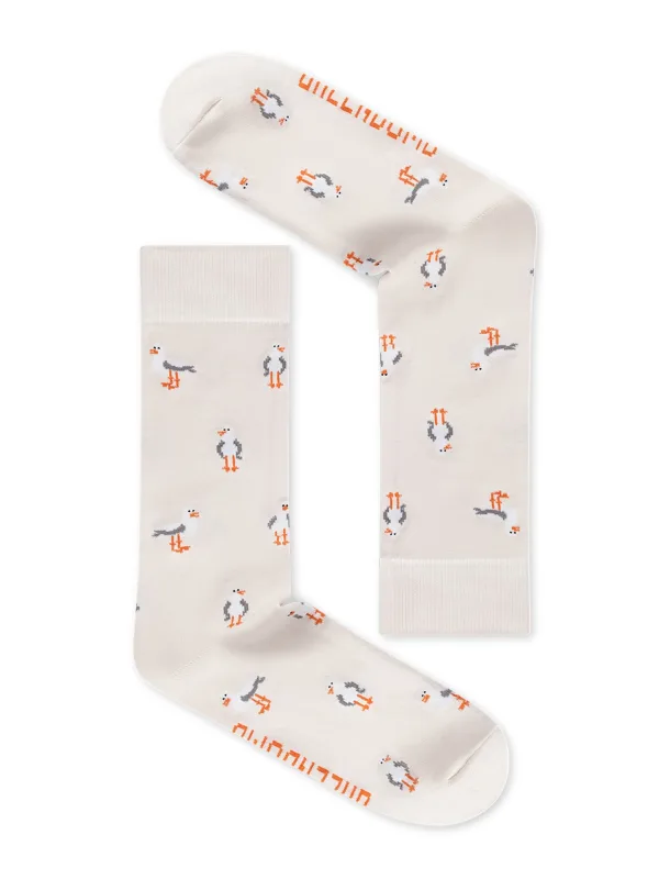 GREENBOMB Sokken ‘Seagulls 3’ lichtbeige / grijs / oranje
