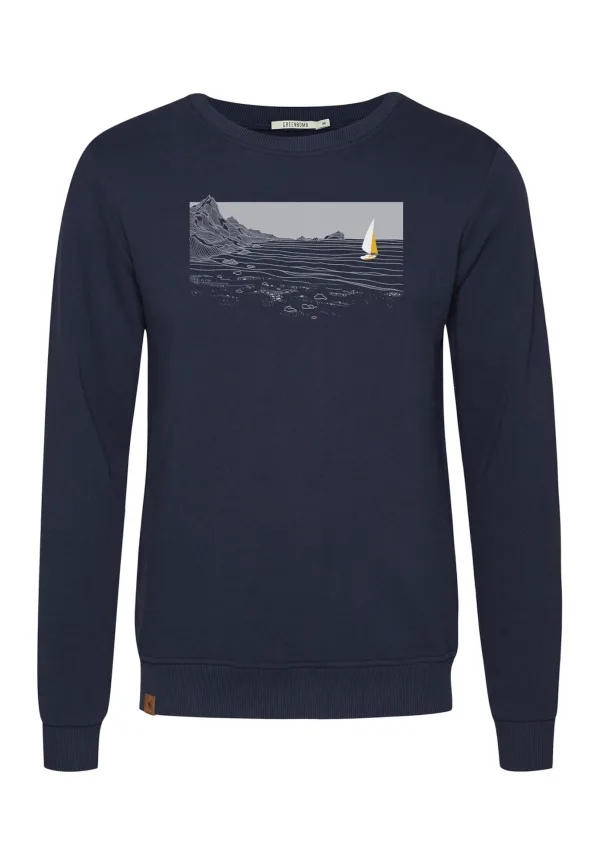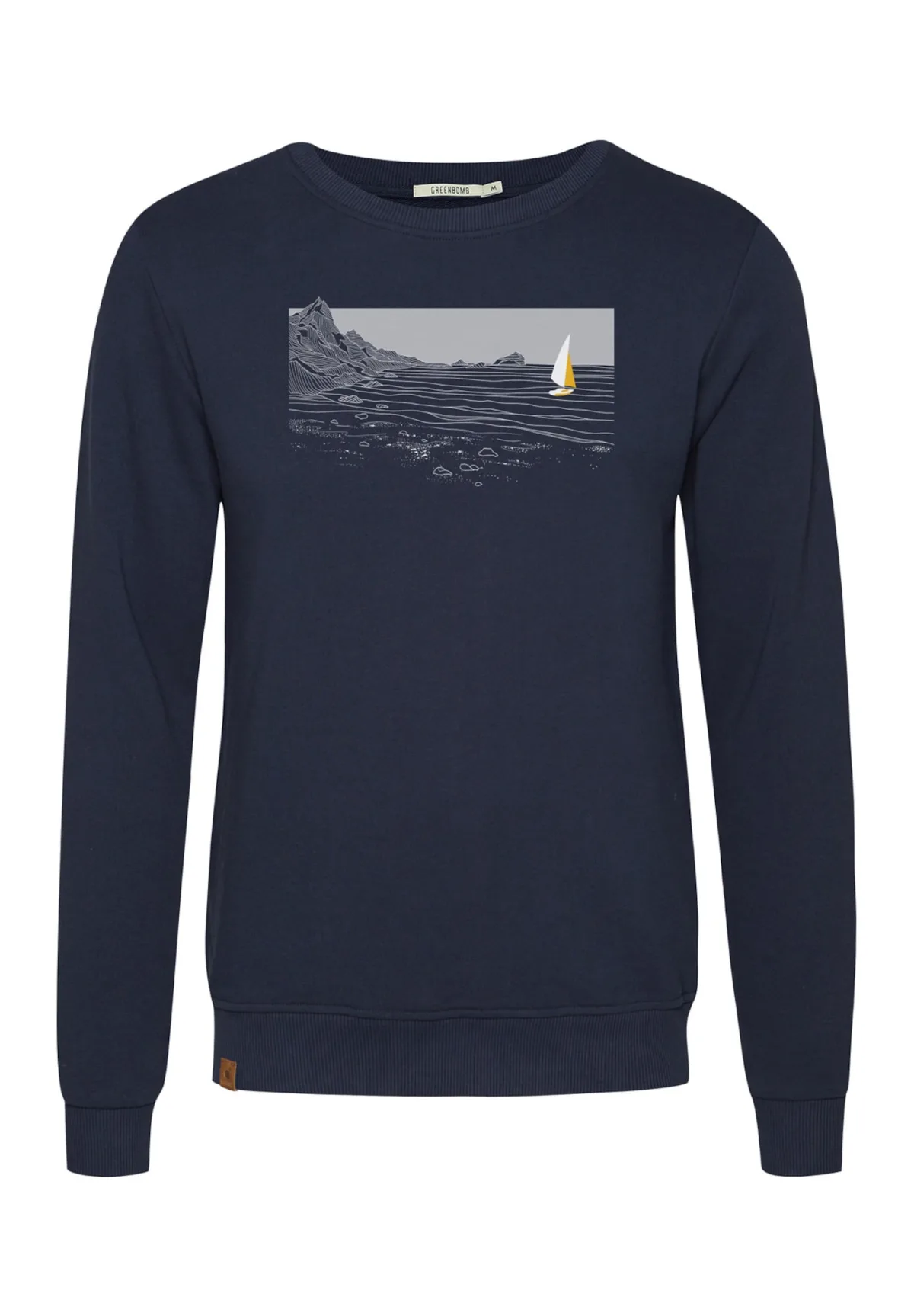 GREENBOMB Sweatshirt ‘Nature Cliffsail’ navy / pastelblauw / geel / wit