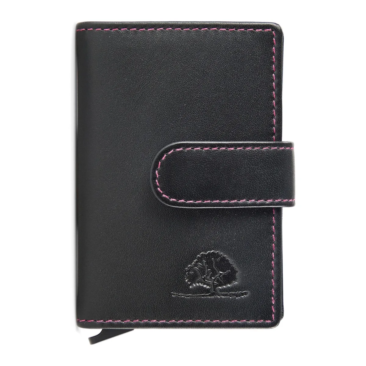 Design: Kaartvakjes, Muntenvakje, Sealed edges; Type sluiting: Drukknoop; Materiaal: Leer; Motief: Effen; Materiaal: Glad leer; Extra's: Contrasterende naden, Label preegdruk, Stevige stof