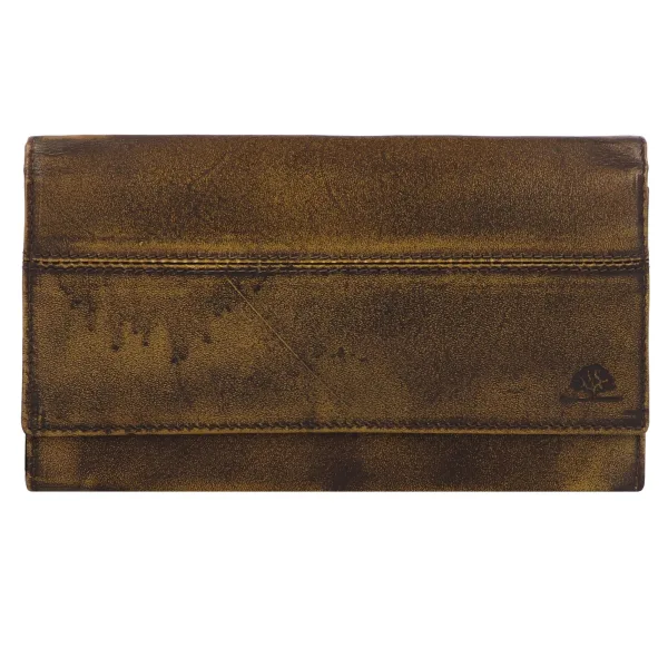 GREENBURRY Portemonnee ‘Destressed’ donkerbruin / safraan