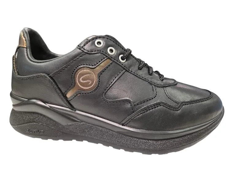 Stijlvolle zwarte sneakers van Grisport, perfect voor dagelijks gebruik. Gemaakt van hoogwaardig leer, zowel aan de buitenkant als van binnen. Het uitneembare voetbed biedt extra comfort, terwijl de rubberen profielzool zorgt voor grip en duurzaamheid. De vetersluiting garandeert een perfecte pasvorm. Ideaal voor een casual look zonder in te boeten op kwaliteit.