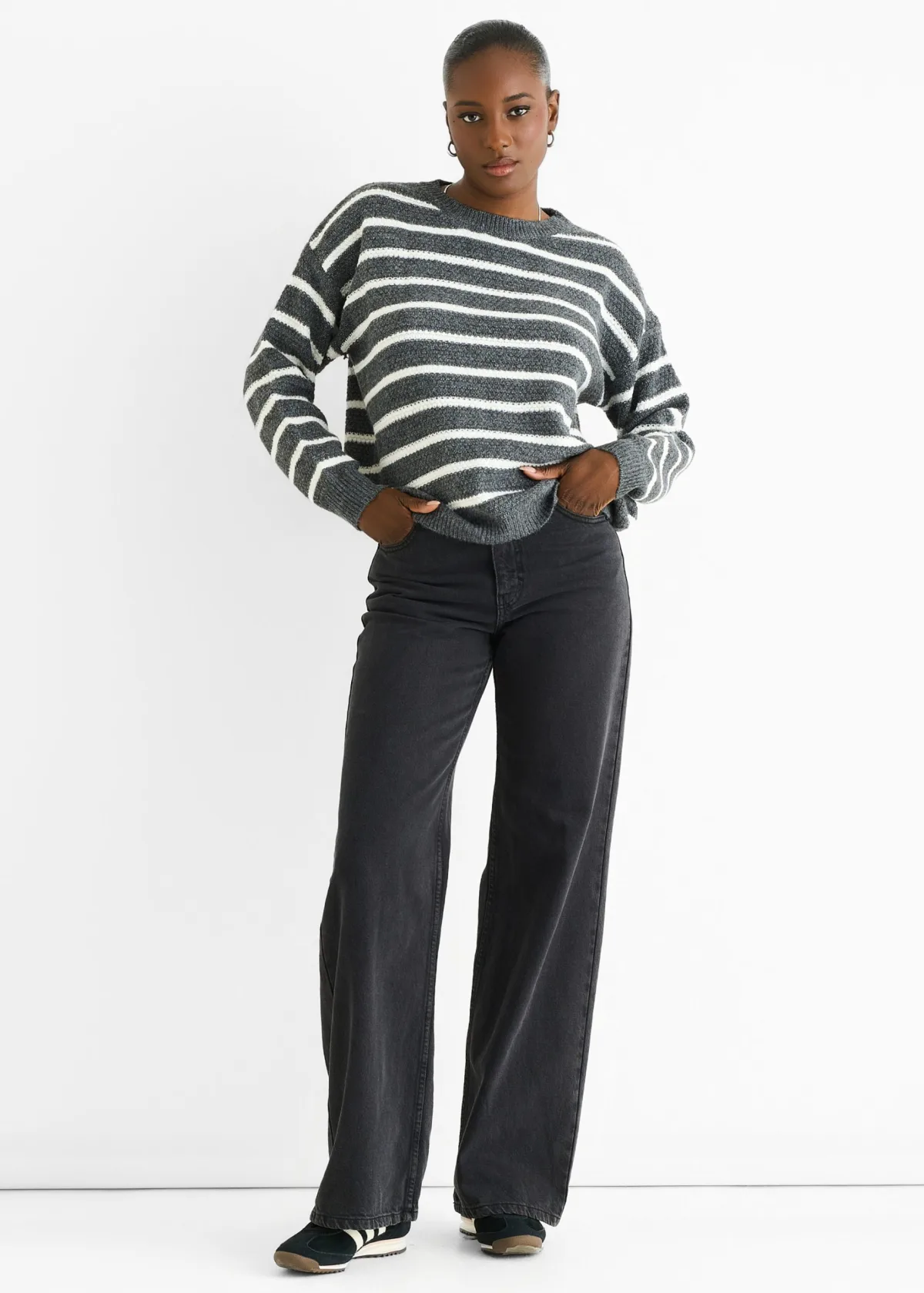 Grijze gestreepte oversized trui met grove brei Prijzen