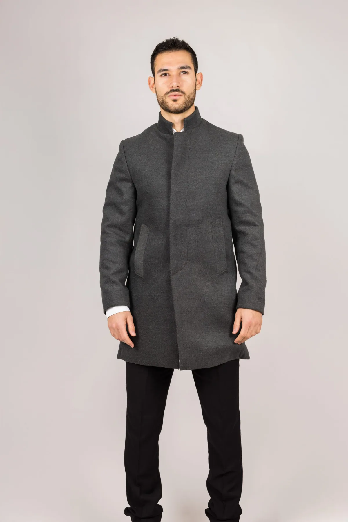 - Bij secretsales.nl kun je Grijze wolmix overjas met opstaande kraag voor heren kopen voor slechts €94,99