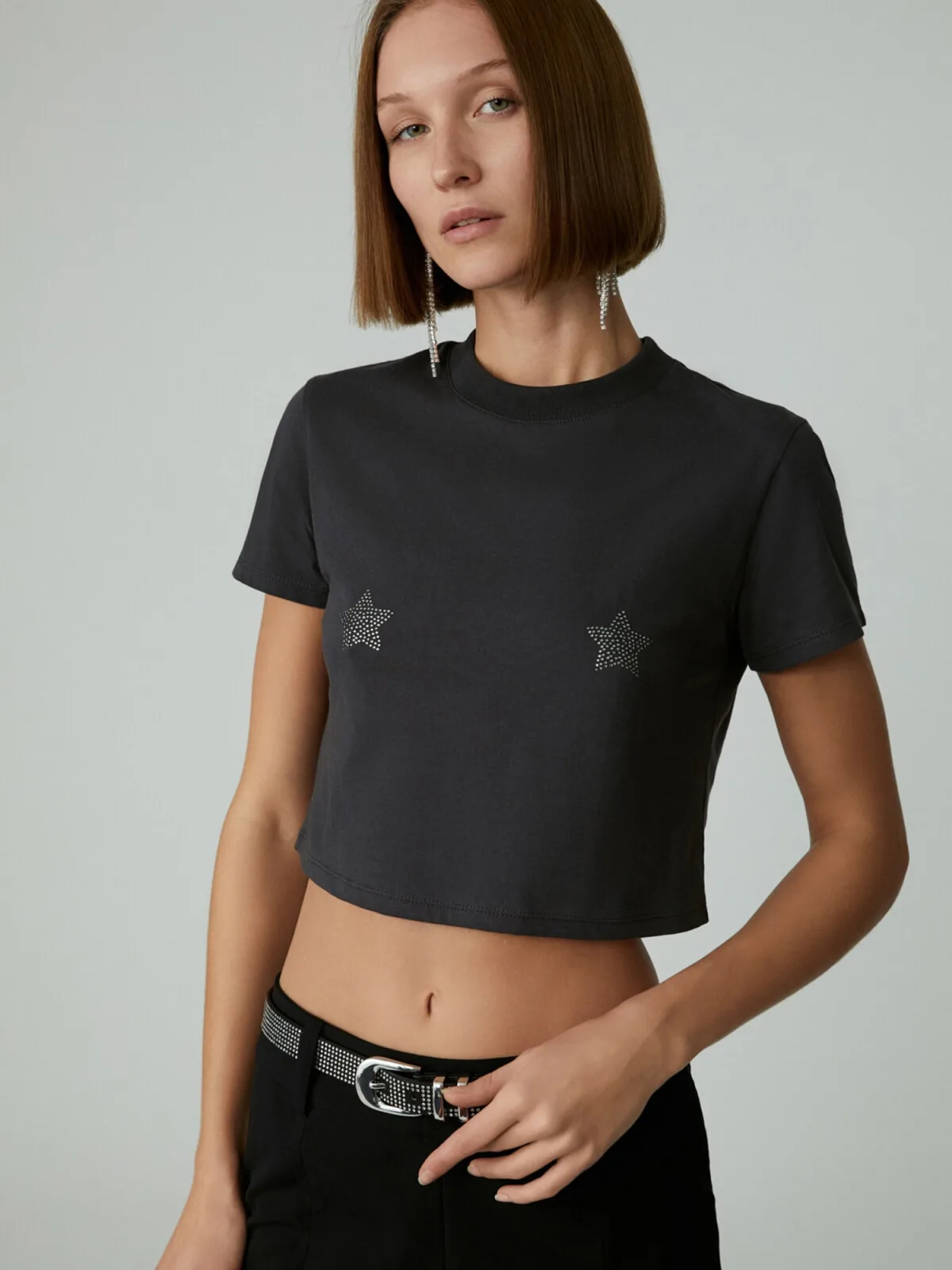 Design: Gevoerde zoom/rand, Geribbelde kraag, Recht model; Materiaal: Jersey; Halstype: Ronde hals; Motief: Effen; Details: Sierstenen; Extra's: Applicaties, Voelt zacht aan; Pasvorm: Normale pasvorm; Armlengte: Kwartmouw; Lengte: Korte pasvorm