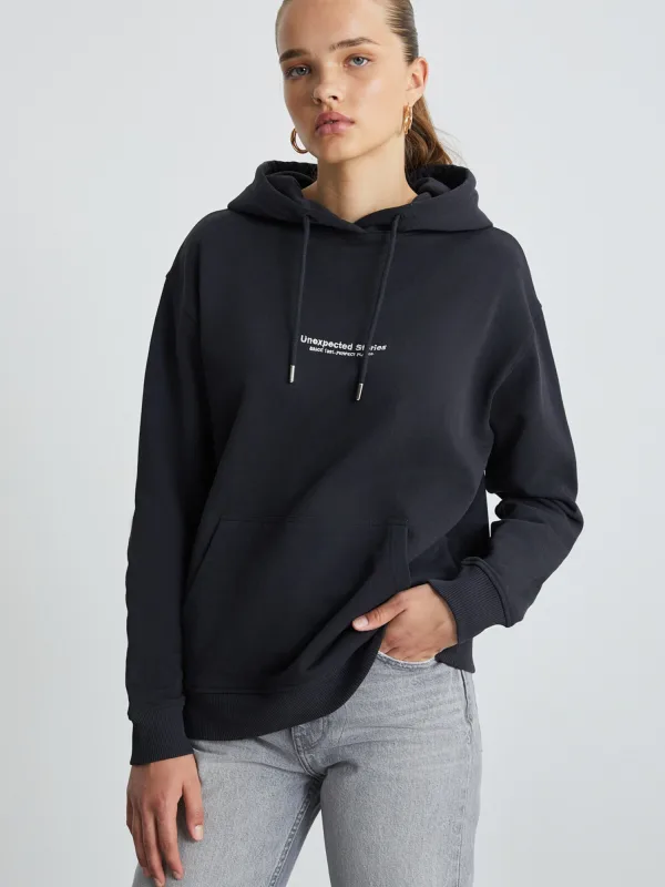 Design: Rechte zoom, Capuchon met trekkoord, Geribd ceintuurtje, Kangaroo zak; Materiaal: Sweatstof; Halstype: Capuchon; Motief: Tekst print; Extra's: Op staal naden, Voelt zacht aan, Huidvriendelijk materiaal; Pasvorm: Normale pasvorm; Armlengte: Lange mouw; Lengte: Normale lengte