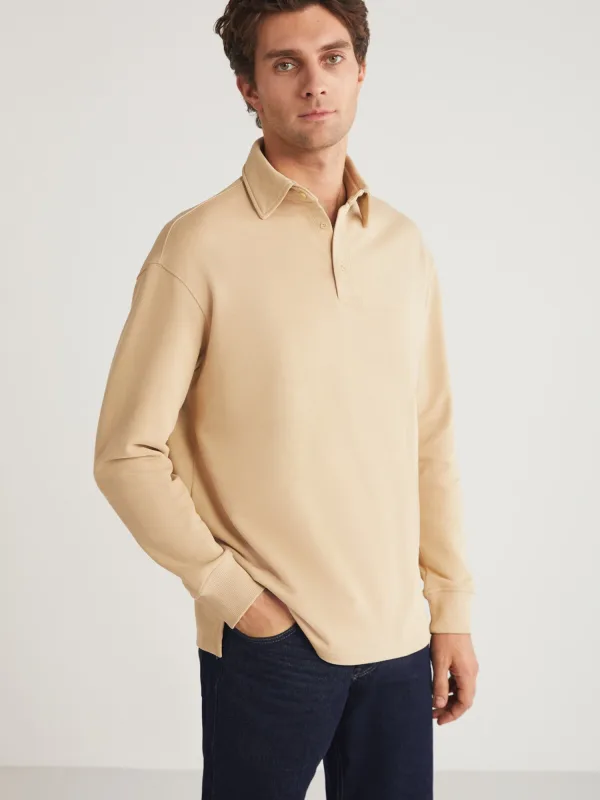 Design: Rechte zoom, Knop placket, Geribd ceintuurtje, Zijdelingse inkepingen, Overcut schouder; Type sluiting: Knoopsluiting; Materiaal: Sweatstof; Halstype: Polokraag; Motief: Effen; Extra's: Op staal naden, Voelt zacht aan; Pasvorm: Normale pasvorm; Armlengte: Lange mouw