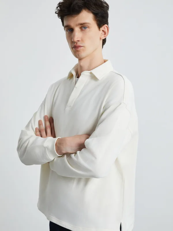 Design: Geribd ceintuurtje, Zijdelingse inkepingen, Overcut schouder; Type sluiting: Knoopsluiting; Materiaal: Sweatstof; Halstype: Polokraag; Motief: Effen; Extra's: Op staal naden, Voelt zacht aan; Pasvorm: Losse pasvorm; Armlengte: Lange mouw