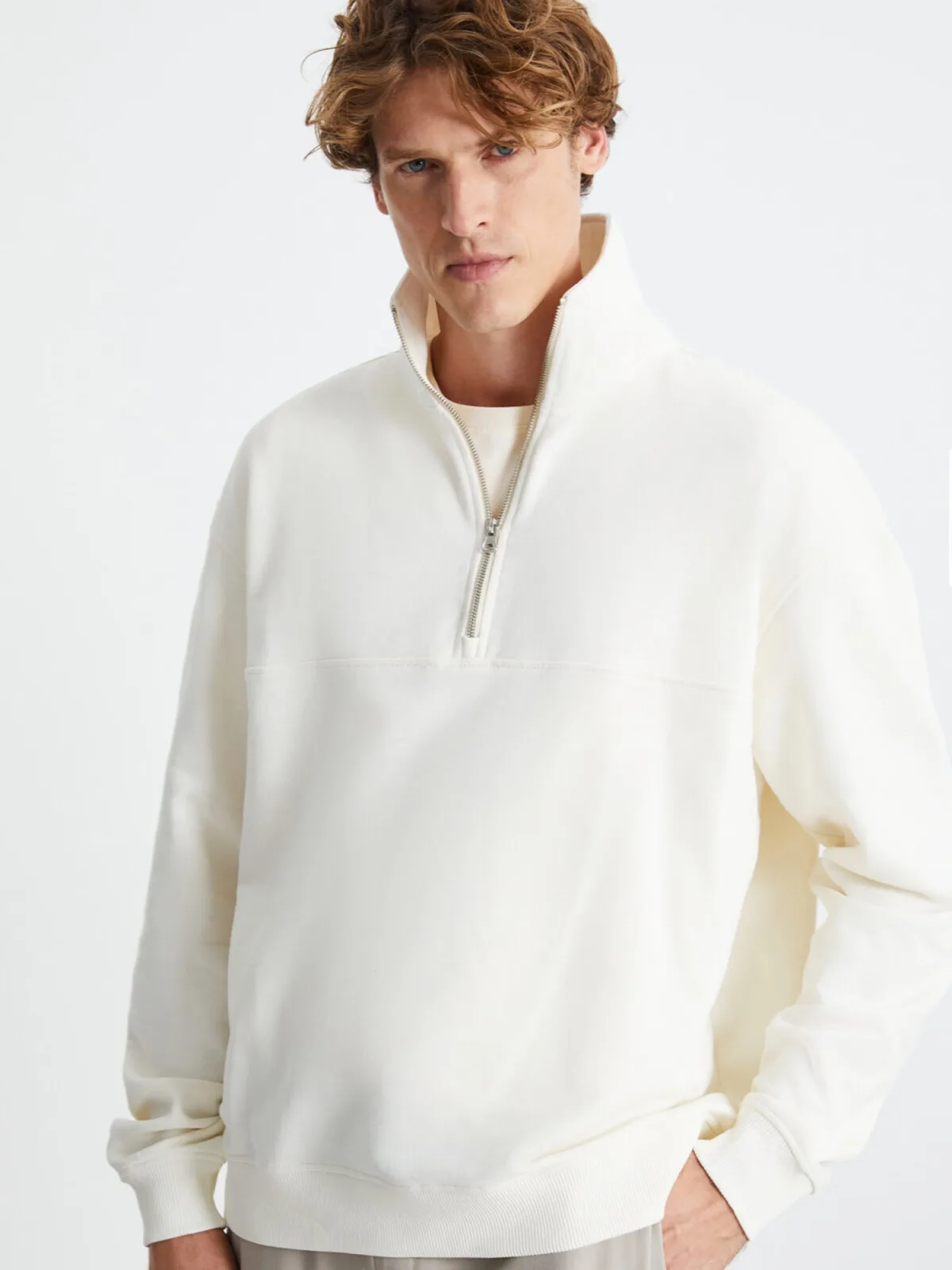 Design: Geribd ceintuurtje, Overcut schouder, Halve rits; Type sluiting: Ritssluiting; Materiaal: Sweatstof; Halstype: Schipperskraag; Motief: Effen; Extra's: Op staal naden, Voelt zacht aan; Pasvorm: Losse pasvorm; Armlengte: Lange mouw